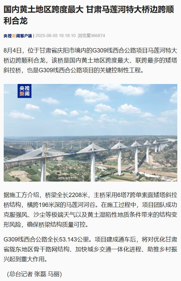 • 甘肅工程咨詢集團(tuán)監(jiān)理項(xiàng)目取得重大突破:國內(nèi)黃土地區(qū)跨度最大 甘肅馬蓮河特大橋邊跨順利合龍